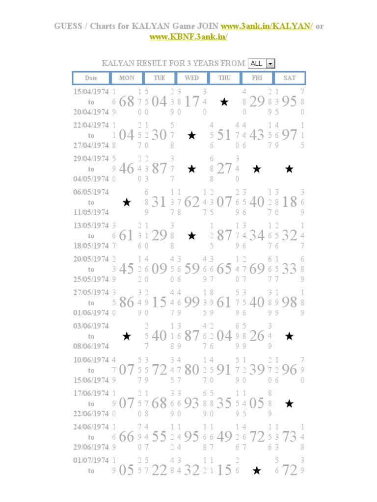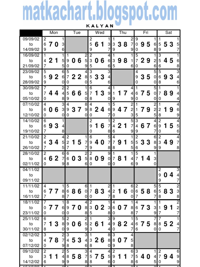 Stta Matka Kalyan Chart Com